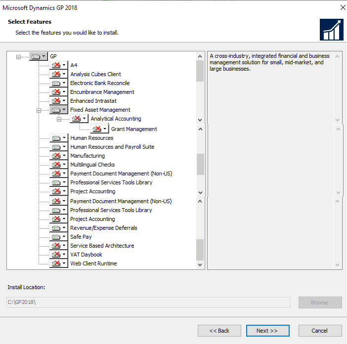 While robust functionality is part of the core GP application code and dictionary, there are some external products such as Revenue and Expense Deferrals or Fixed Assets that require their own special product selection at time of installation. They can be added afterward, but the service pack needs to be reapplied to pick up any bug fixes or enhancements and be at the same level as the rest of the code. As long as these dictionaries were installed, enabling them was straightforward, and after which the module or function would be available for use.