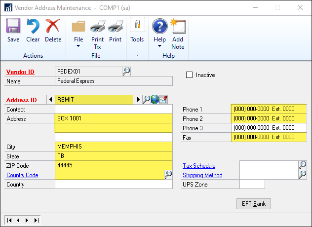 GP - Vendor Maintenance and Related Windows