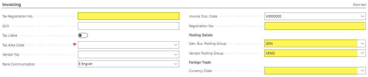 Fast Tabs define the logical sections on the Vendor Card page in BC and consist of a General, Address & Contact, Invoicing, Payments and Receiving sections. BC clearly organizes and lays out the data differently than in GP.